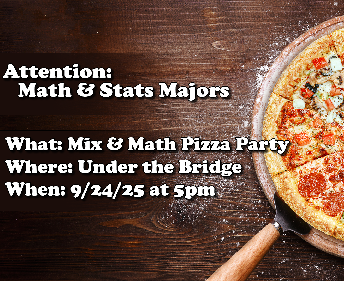 Math & Stats majors (undergrad & grad & alumni) are invited to the annual Mix & Math Pizza Party under the bridge! Meet Math & Stats Faculty and fellow students with a chance to win some UNCG swag!