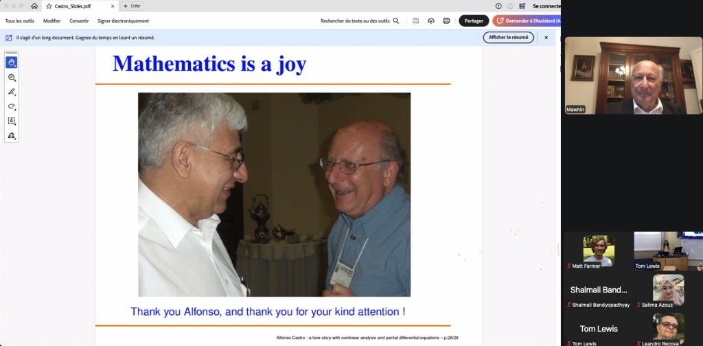 10:20 – 11:20am (Special Presentation) Jean Mawhin – Alfonso Castro : A Love Story with Nonlinear Analysis and Partial Differential Equations